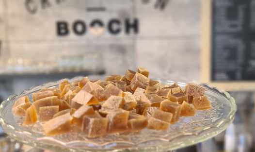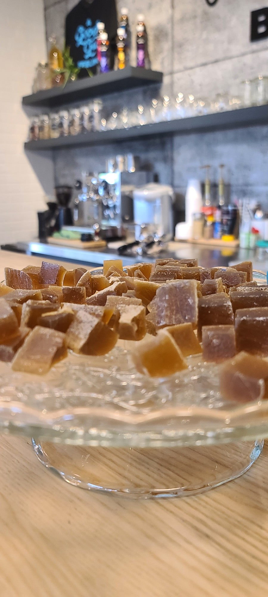 Crystal Candy with a Purpose. Inspired by traditional Kohakutou, this vegan, gluten-free treat features a crunchy crystal shell and a soft, jelly center—made from organic cane sugar, agar-agar, kombucha, and rescued SCOBY.
